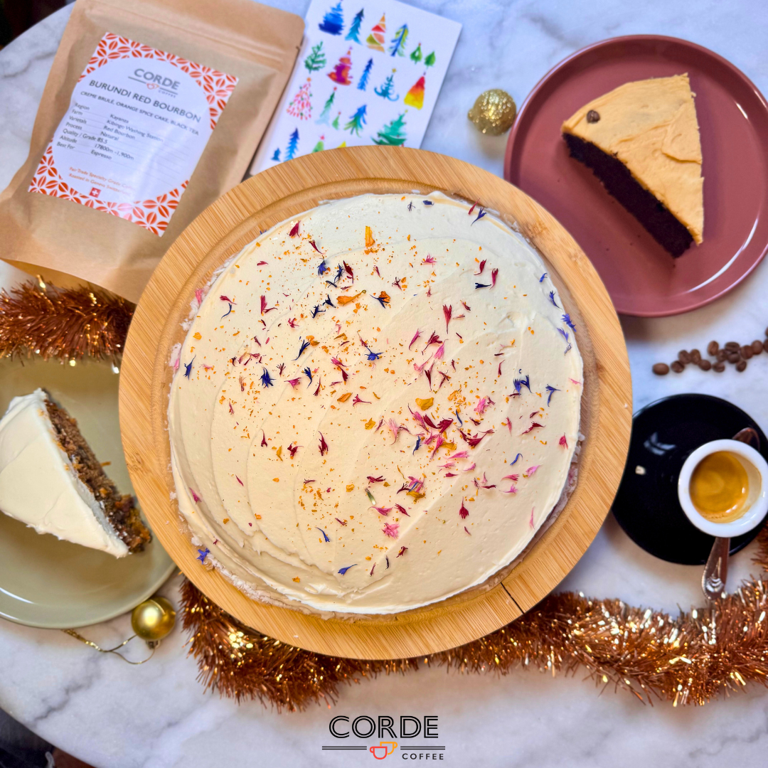 Notre gâteau au citron moelleux surplombé d'un glaçage au citron et à la vanille, agrémenté de fleurs locales. Il est 100% vegan. C'est l'un des nos gâteaux préférés ! Commandez-en un pour votre prochaine fête ou anniversaire !
