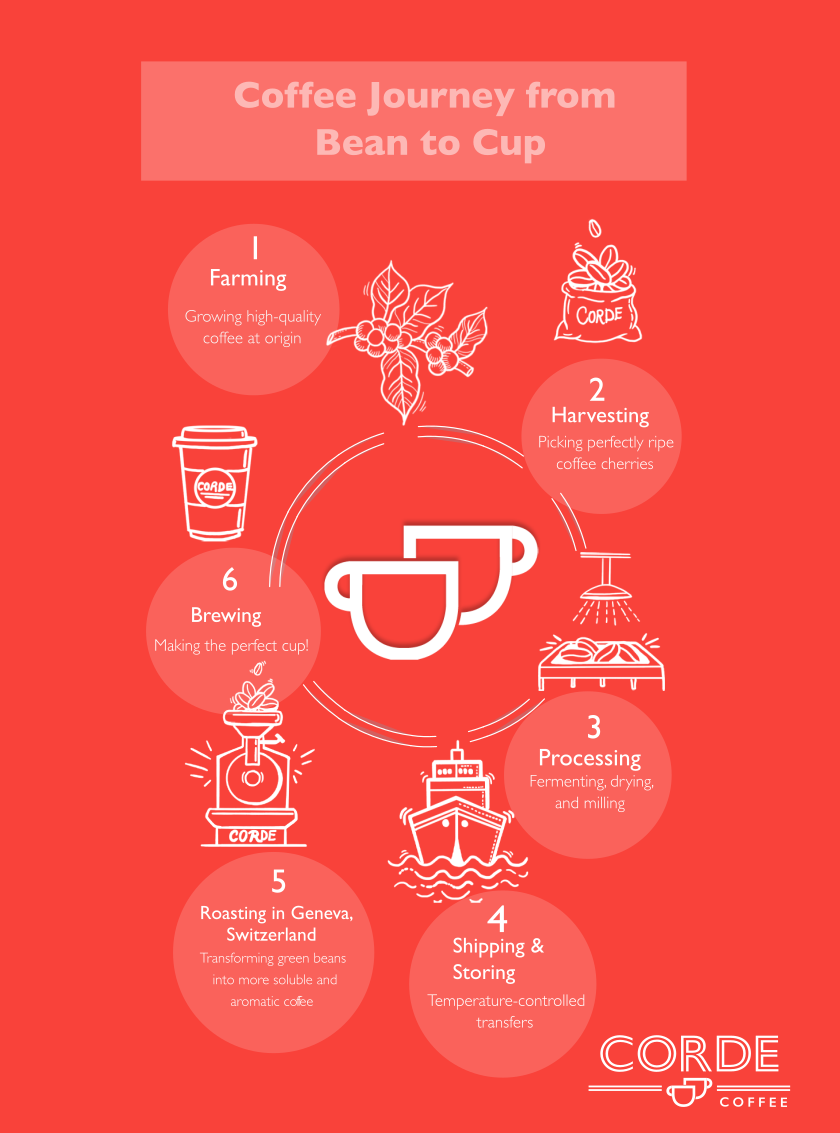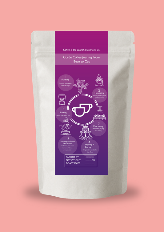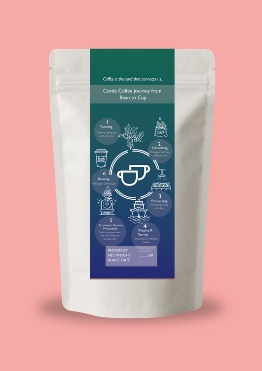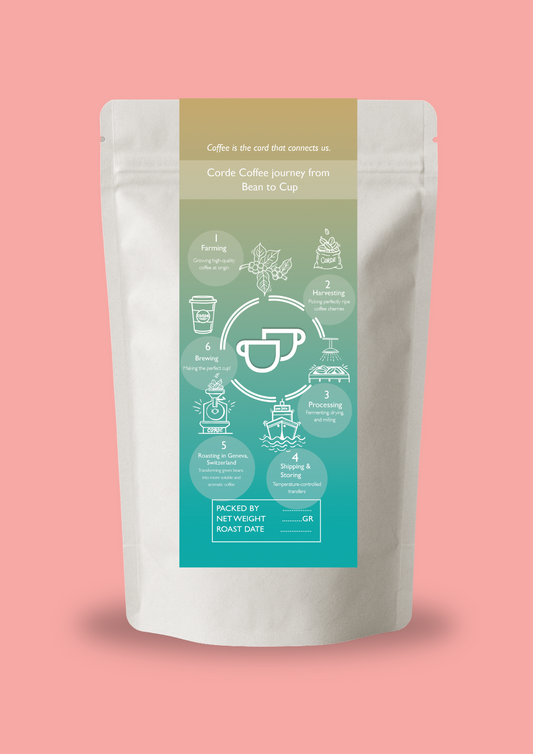 Roasted weekly in Geneva with lots of love. We carefully select specialty grade coffees when the new harvests are available and love highlighting all of the different aromas that our coffees can offer through our carefully developed roast recipes. We work to balance elements like acidity & sweetness and showcase the tropical, gourmet, spicy, floral, or chocolatey flavors in your daily cup of Corde Coffee.